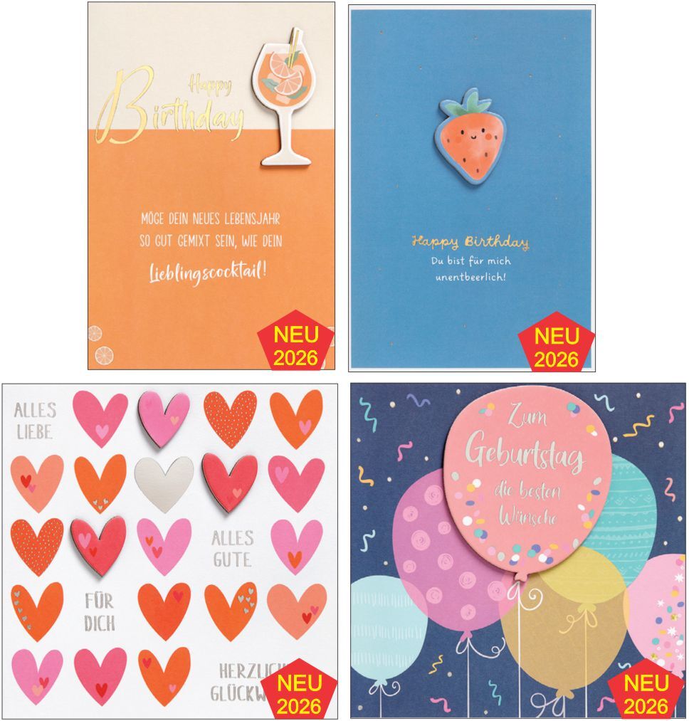 • Hochwertige Glückwunschkarten mit Metallic-Effekt und veredelten Papierapplikationen