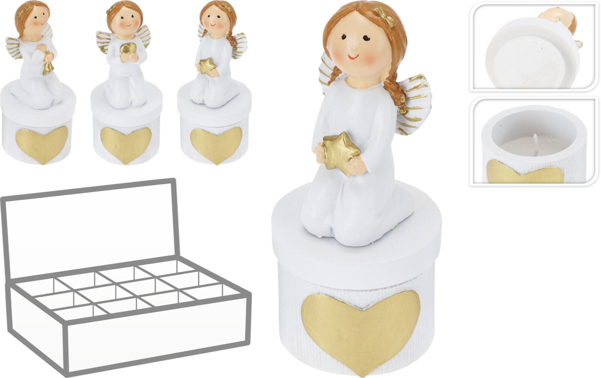 Dose mit Kerze und Engel – 12 Stück im Display