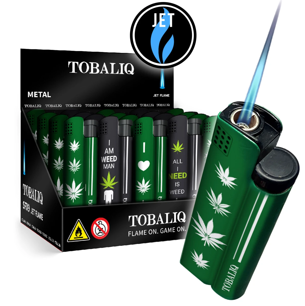 ALPHA Metal Jet Feuerzeug „Weed Needed“ – 25er Display