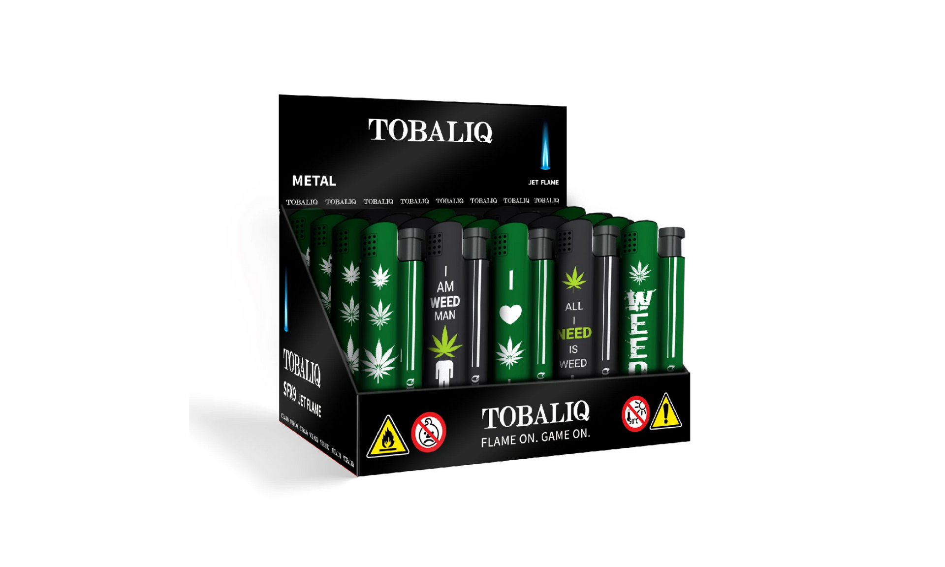 Gefertigt mit hochwertigem Metallgehäuse und verpackt im praktischen 25er-Display eignet sich das Feuerzeug perfekt für Trafiken, Headshops und alle Verkaufsstellen, die trendiges Zubehör rund um das Thema Hanf anbieten.