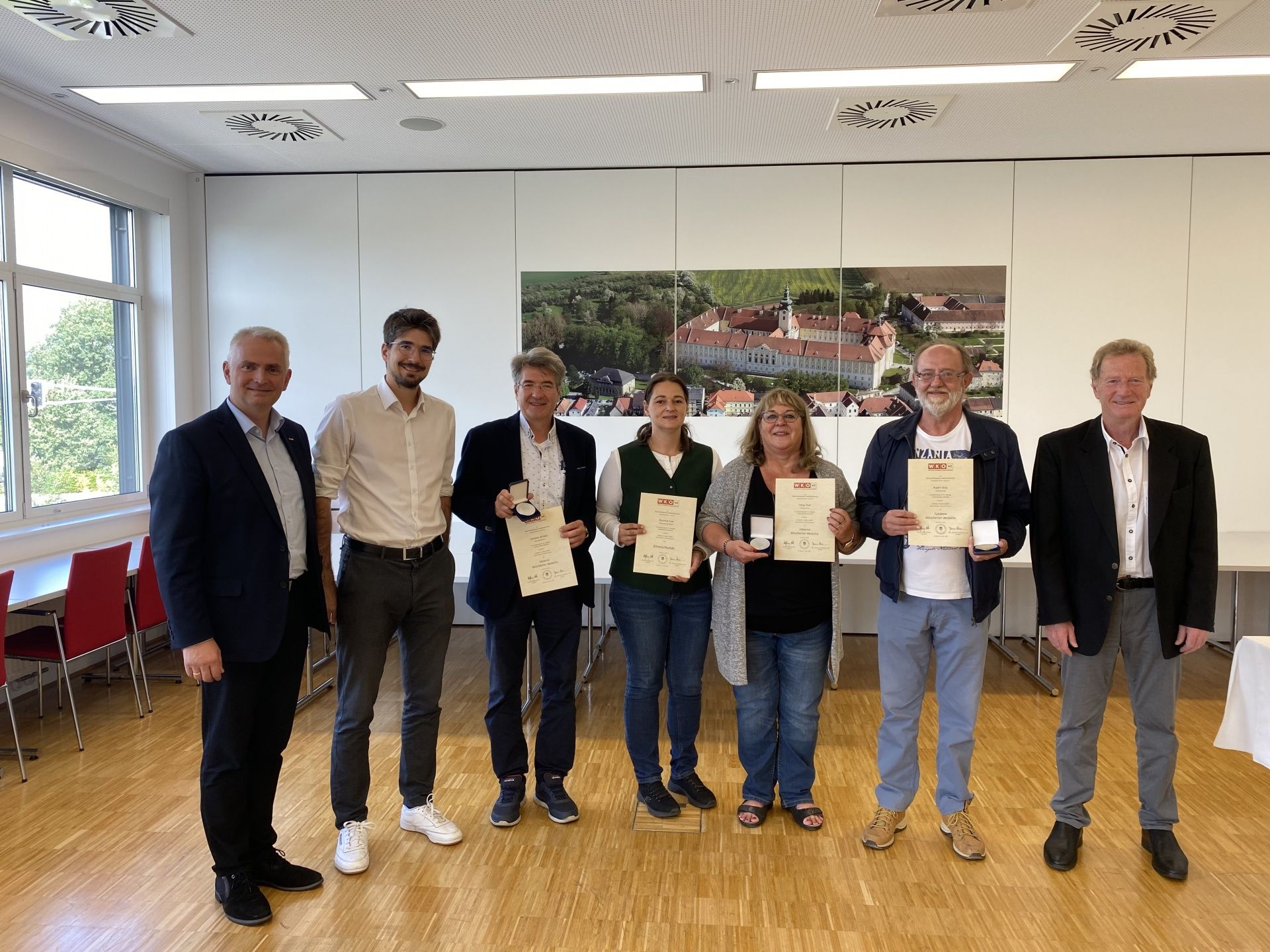 Am Freitag, den 17.9.2021, ließen wir einige unserer treusten Mitarbeiter hochleben. Dies geschah im Rahmen einer offiziellen Urkunden- bzw. Medaillenverleihung durch die Bezirksstelle Amstetten der Wirtschaftskammer Niederösterreich. Zu den Jubilaren zählten Klein Markus (40 Jahre, Außendienst), Stolz Rupert (40 Jahre, Fakturierung), Weigl Sonja (35 Jahre, Buchhaltung), Schüller Christian (30 Jahre, Geschäftsführung), Heinisch Rudolf (30 Jahre, Außendienst), Parb Helga (25 Jahre, Fakturierung) und Funk Roswitha (10 Jahre, Fakturierung).