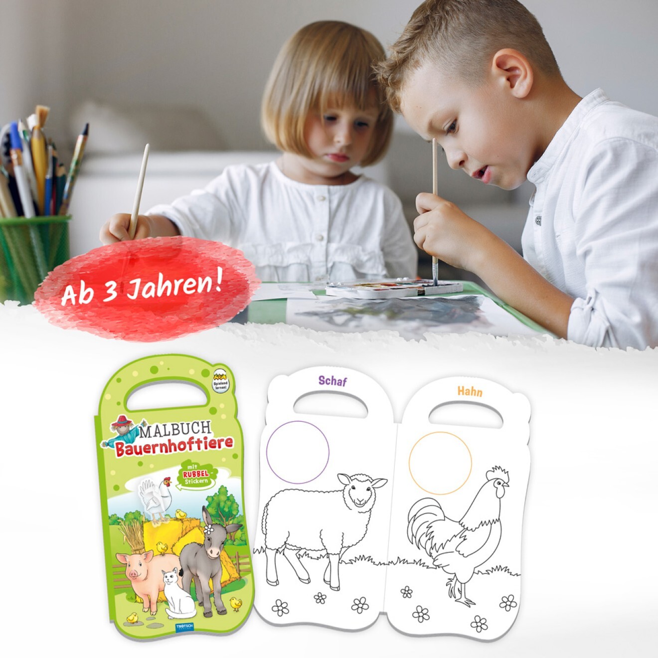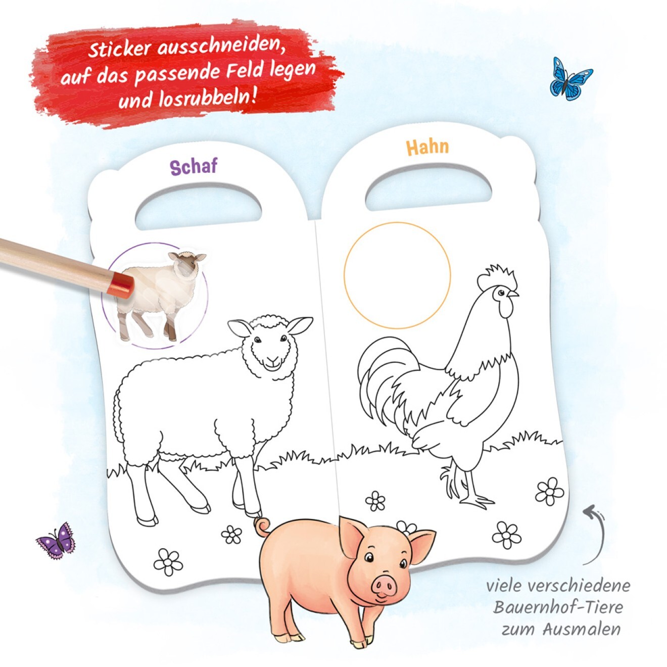 Malbuch mit Rubbelsticker Bauernhoftiere