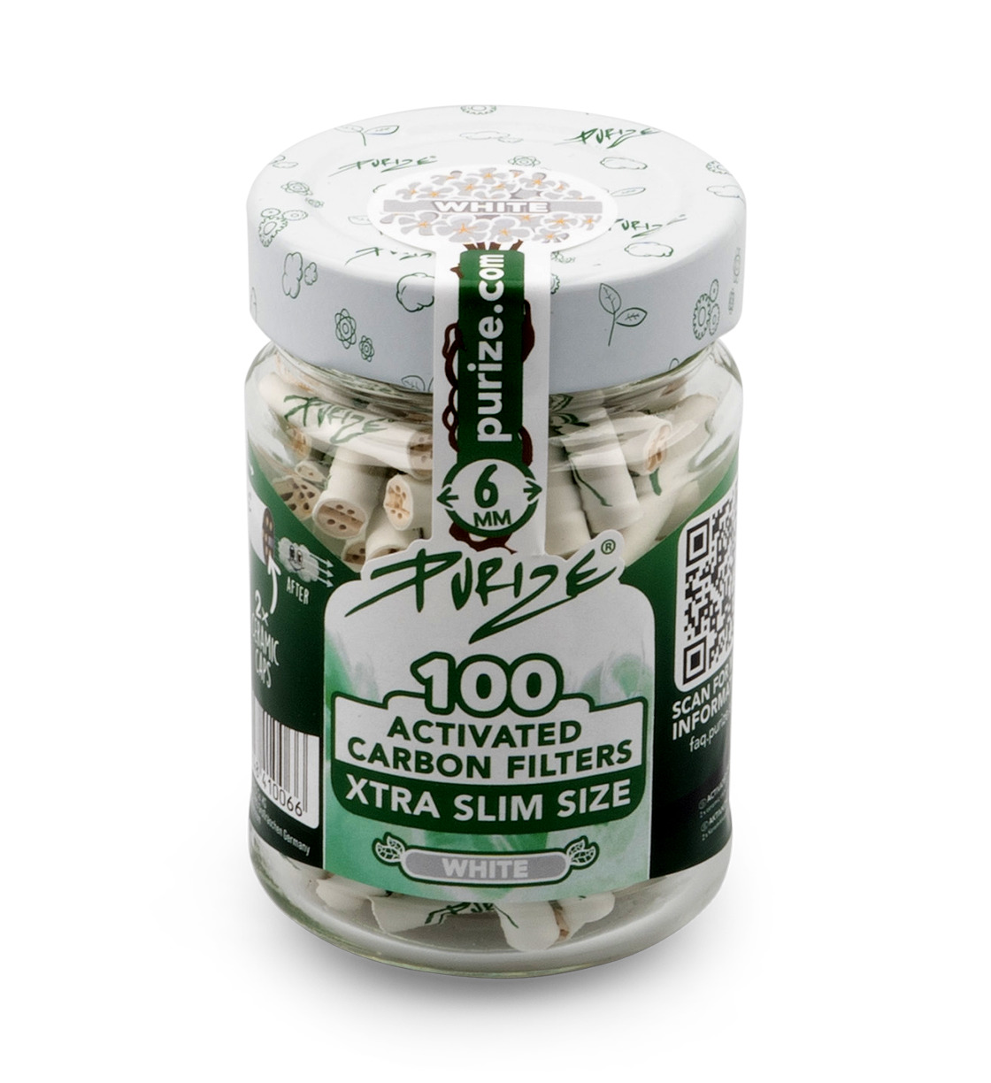Ordentlich organic: Die weißen 100er XTRA Slim Size Aktivkohlefilter-Gläser im Upcycling-Glas!