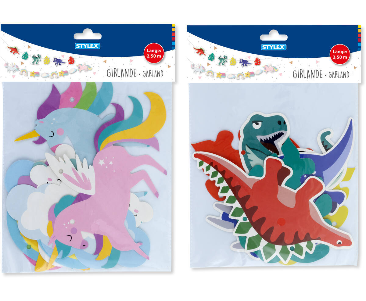 STYLEX Girlande, 2,50 Meter, Dino und Einhorn