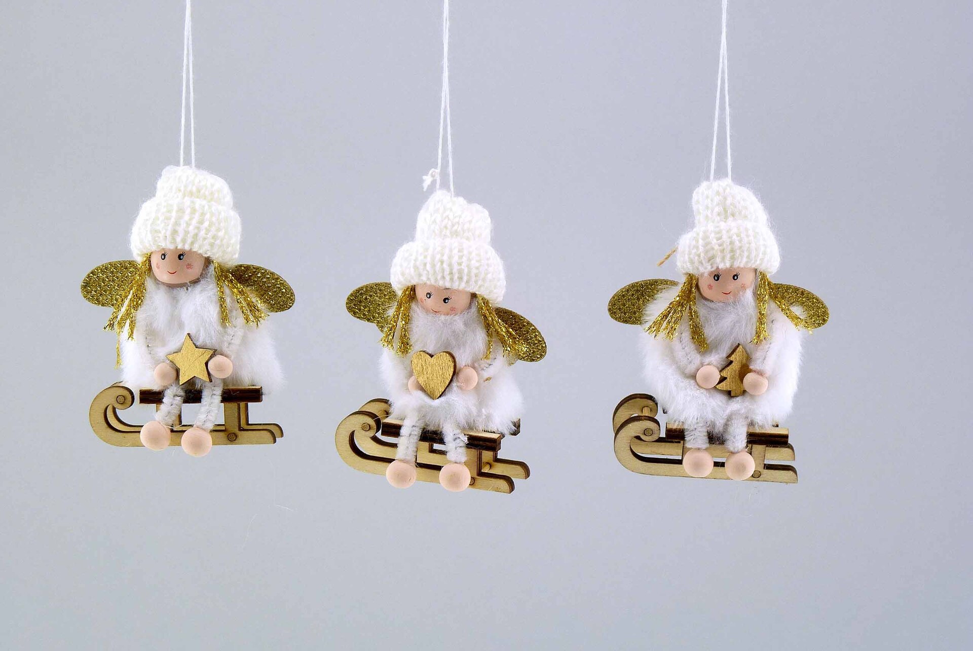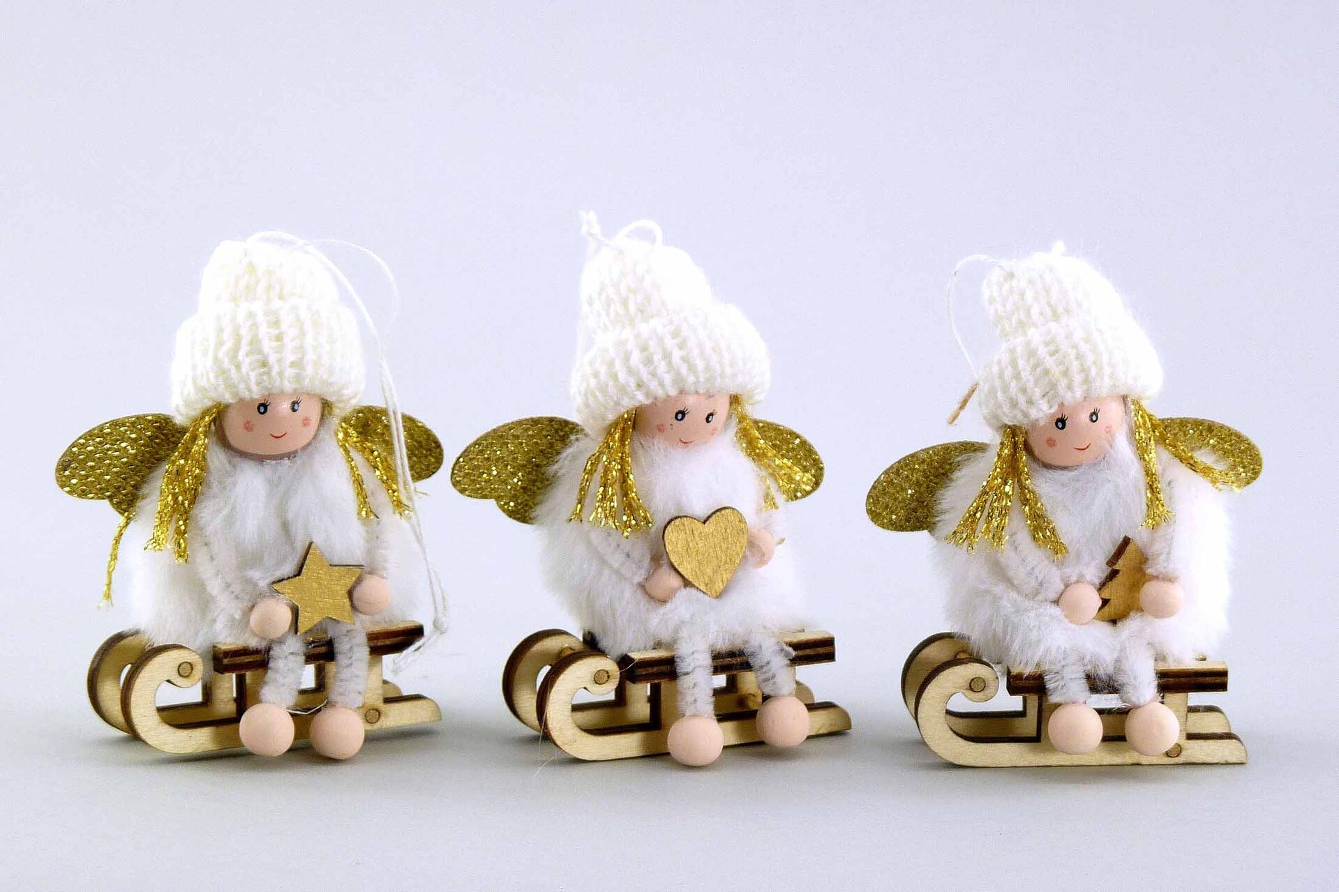 Stoff Engel auf Holzschlitten
