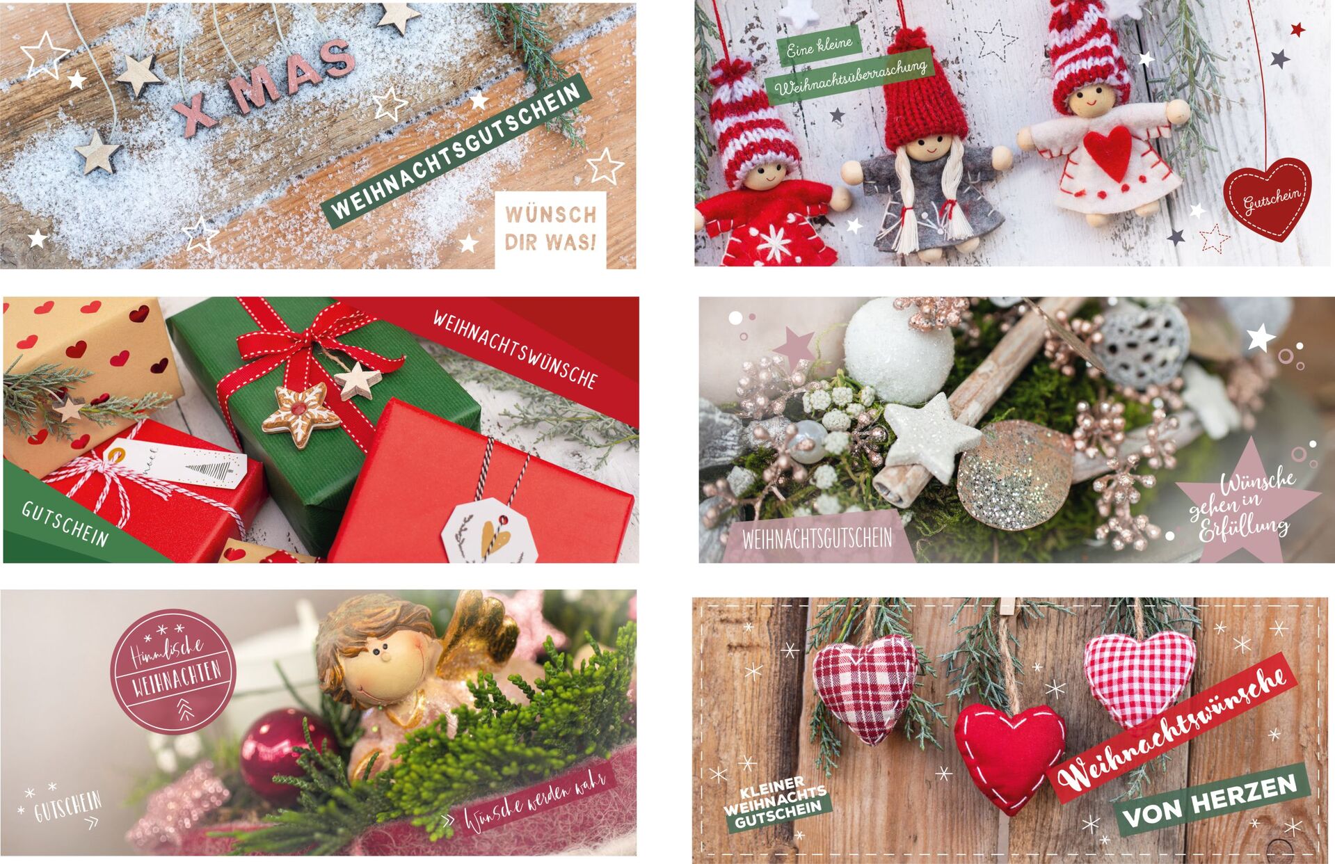 Weihnachts-Gutscheine zum Befüllen – 30 Stück im Display, 6 Motive (21 × 9 cm)