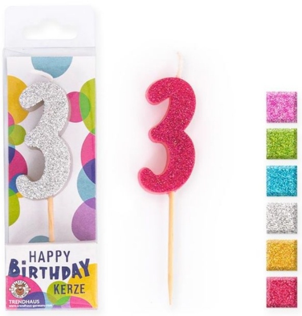 Zahlenkerze 3, Glitter, 4,5 cm
