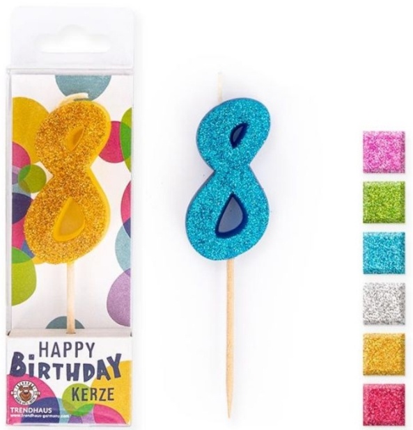 Zahlenkerze 8, Glitter, 4,5 cm